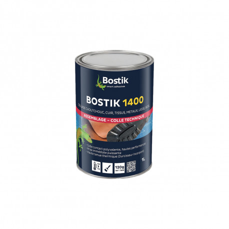 La colle néoprène en gel BOSTIK 1400 - 1L est une colle contact à durcisseur incorporé pour le caoutchouc, cuir, tissus, métaux, liège, bois, mousses polyéther/polyuréthanne, stratifiés et les plastiques rigides. Cette colle polyvalente haute performance s'applique à l'aide d'un pinceau ou d'une spatule crantée fine.