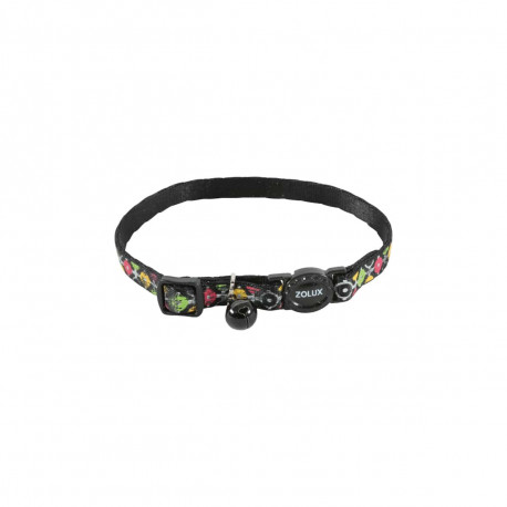 Collier pour chat ZOLUX - Noir- Nylon - Réglable - 520028NOI, collier fantaisie pour chat en nylon disposant d'une boucle de sécurité anti-étranglement ainsi que d'un grelot en métal.