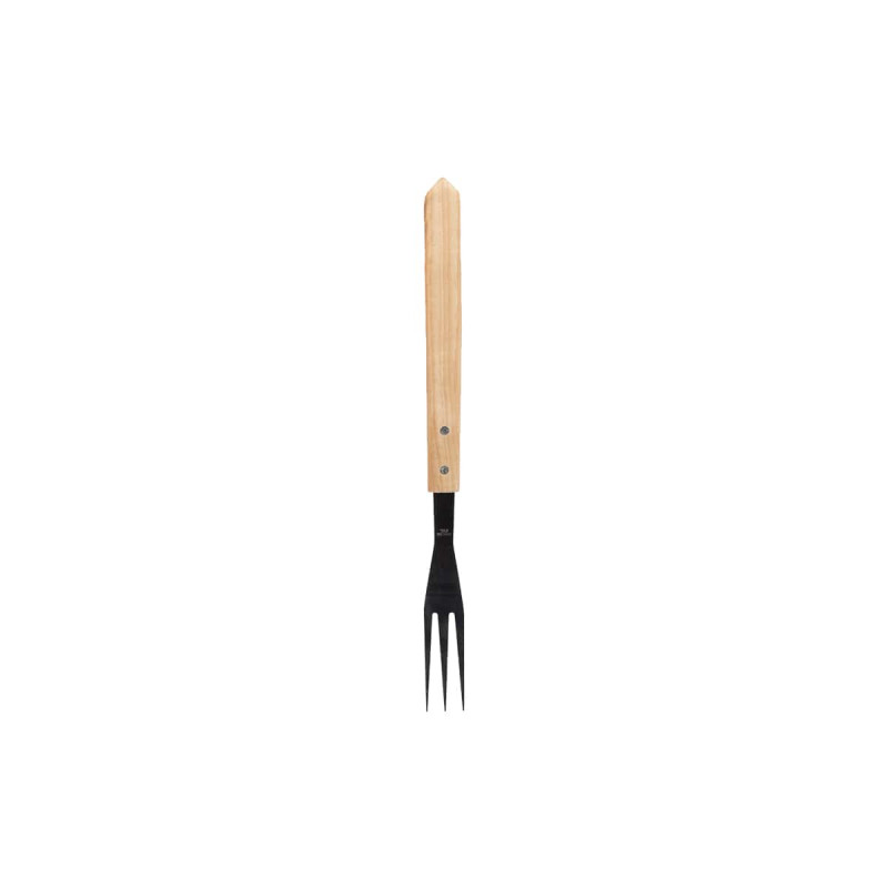 Fourchette pour barbecue - Inox - 22cm, fourchette de 220 mm de long avec trois petits pics. elle est faite en inox et son manche en bois.