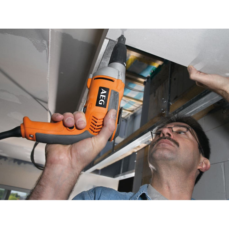 Visseuse Bardage AEG 720W - S 2500 E, visseuse conçue pour le bardage et les vis auto-taraudeuses. Son carter et sa mécanique sont en métal pour améliorer sa durabilité.