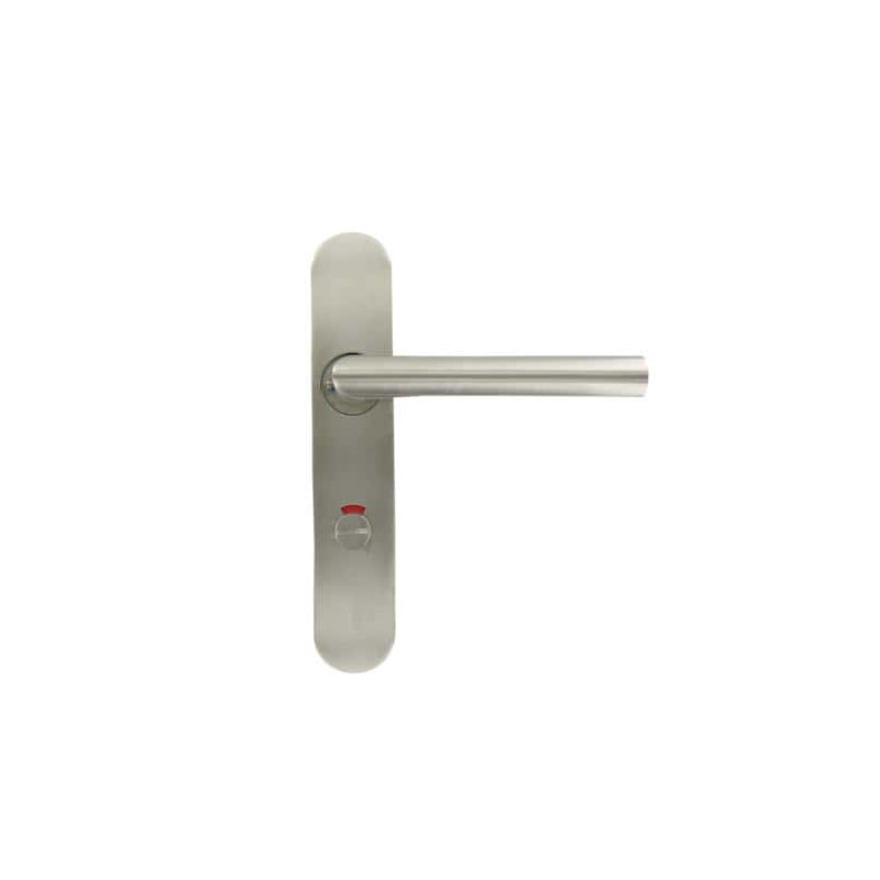 Poignée sur plaque Inox - Pomerol Plaque avec condamnation à voyant - Finition brossé, poignée montée sur plaque avec un système de fermeture par condamnation. Faite en inox, avec une finition brossée. Cette poignée possède un voyant permettant de savoir si la porte est verrouillée