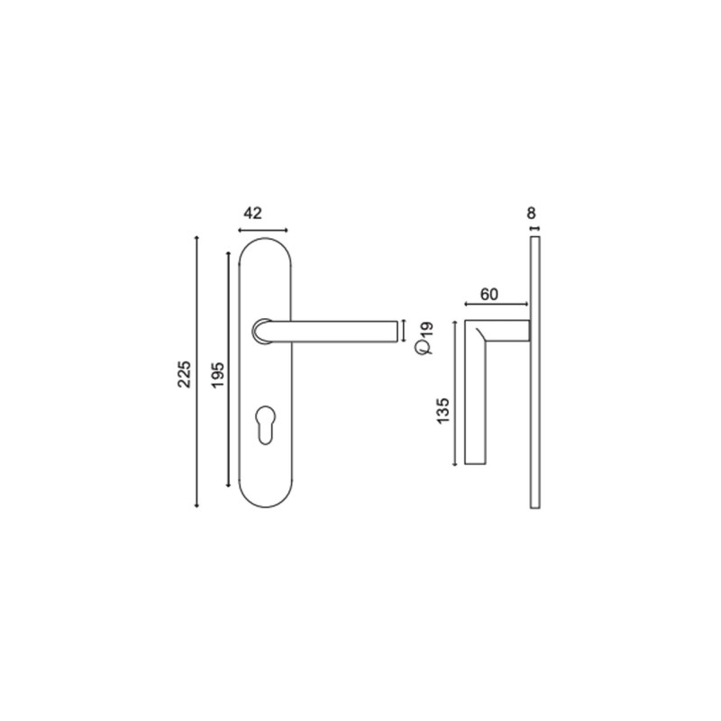 Fiche technique pour Poignée sur plaque Inox - Pomerol Plaque avec condamnation à voyant - Finition brossé