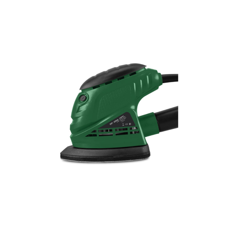Ponceuse triangulaire KOMA 105W 08707, ponceuse triangulaire idéale pour poncer les angles, les bords et les reliefs des meubles. Sa tête triangulaire permet d?atteindre les angles de manière précise et de travailler sur eux uniquement avec la pointe de la semelle. Elle propose une vitesse à vide de 12000 tr/min. Elle contient un tuyau pour récupérer la poussière et un papier abrasif.