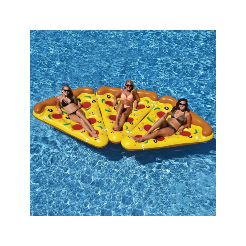 Bouée Part de pizza - Géant, une bouée amusante en forme de part de pizza idéale pour s'amuser dans la piscine entre amis ou en famille. Cette bouée pizza conviendra parfaitement aux petits comme aux grands.