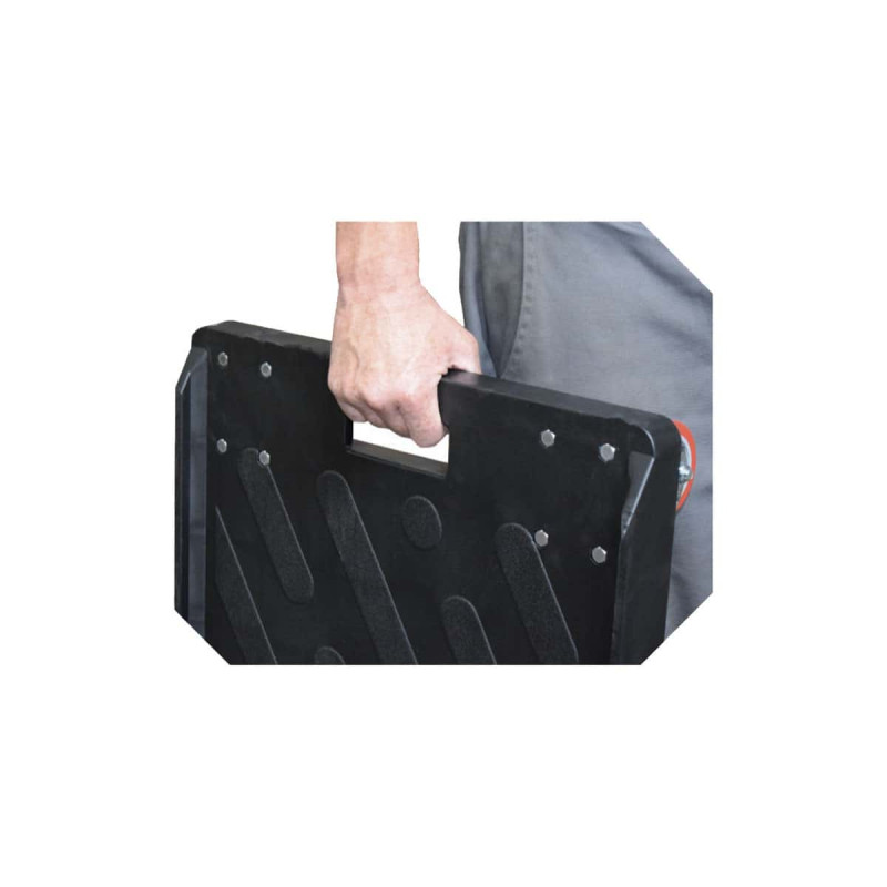 Plateau roulant à rebords 300 KG - 67x46x14,5cm, ce plateau en polypropylène et en fibre de verre de 67x46 cm est antidérapant et équipé de 3 rebords. Ceci permet d'entreposer des charges lourdes pouvant aller jusqu'à 300 kg sans risque qu'elles ne tombent lorsque l'on déplace le plateau. Ses 4 roulettes dont 2 fixes et 2 pivotantes avec frein assurent un déplacement facile et en toute sécurité. Le plateau est pourvu d'une poignée afin de le porter à la main ou d'y accrocher un crochet pour pouvoir le tirer.