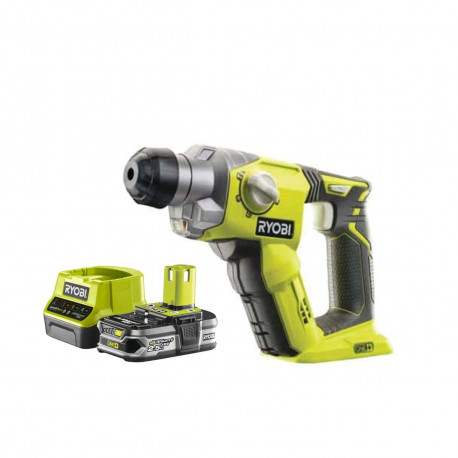 Pack RYOBI Marteau perforateur 18V One+ R18SDS-0 - 1 Batterie 2.5Ah - 1 Chargeur rapide RC18120-125, Les 4 modes d'action du marteau perforateur sans fil 18 V SDS+ (perçage, perforation, burinage, burinage libre) assurent un travail efficace et adapté à chaque situation pour percer aussi bien la pierre, le béton, le bois et le métal. Son nouveau design compact offre un confort de travail optimal et le mandrin SDS+ accepte tous les forets pour plus de praticité. La poignée anti vibration et le revêtement micro alvéolé offrent un meilleur confort d'utilisation et une meilleure maîtrise de la machine.