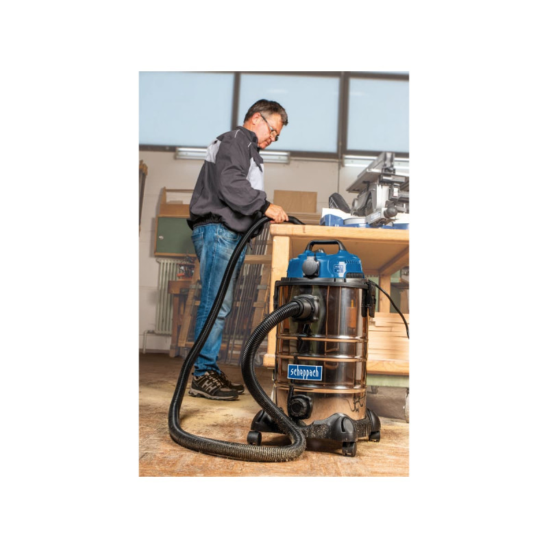 Aspirateur eau et poussière SCHEPPACH 30L - 1400W - ASP30-ES, grâce à sa forte puissance d'aspiration et sa cuve robuste, cet aspirateur sera votre meilleur atout pour nettoyer votre atelier et sera idéal pour tout vos chantiers.
