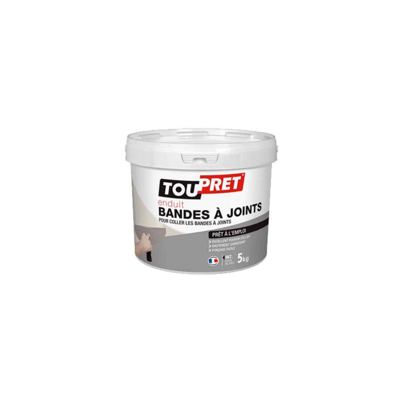 Enduit bande à joint et lissage TOUPRET 5Kg - SABJP05, pour coller tous types de bandes et lisser. Prêt à l'emploi. Facile à appliquer et à poncer.