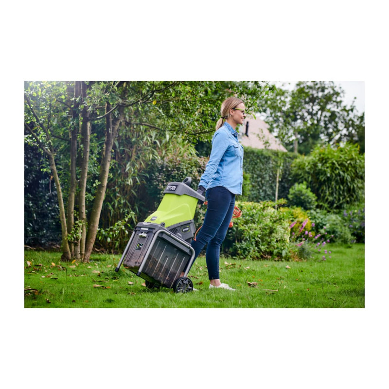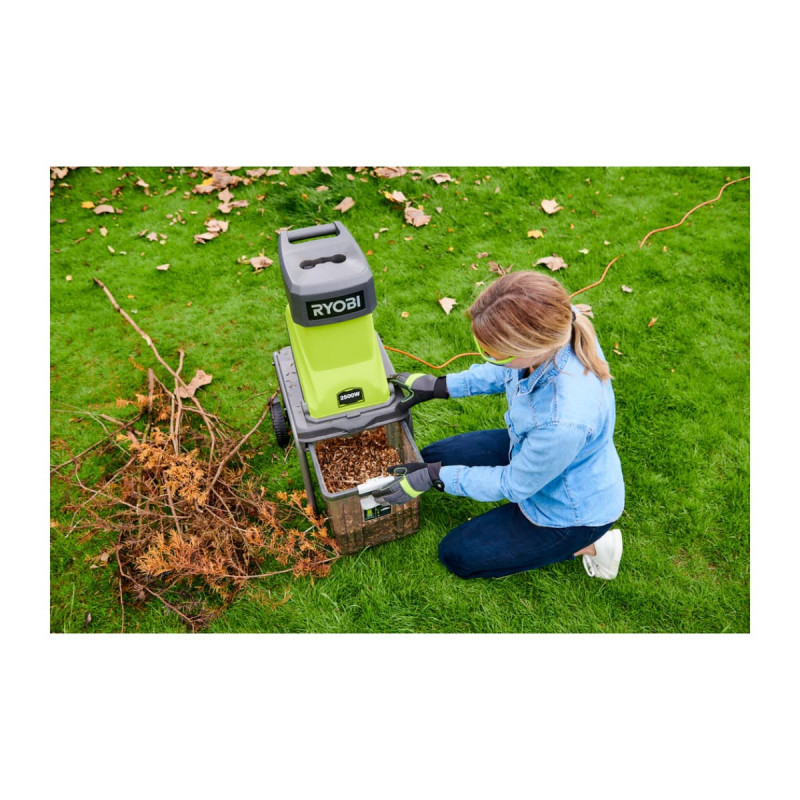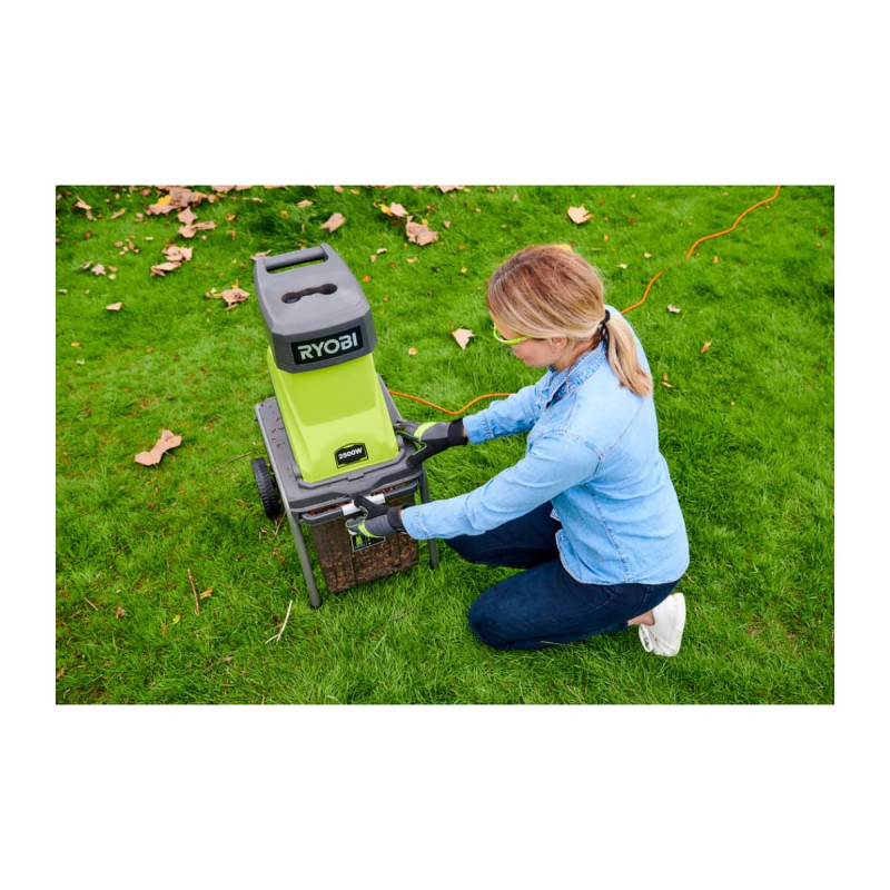 Pack RYOBI Broyeur de végétaux 2500W RSH2545B - Jeu de 2 lames pour broyeur RAC351, idéal pour les jeunes pousses et la taille de saison. L'entrainement automatique des branches permet un débit élevé pour plus de rendement. Vous pourrez stocker jusqu'à 40L et ensuite bénéficier d'un vidage facilité. Un moteur puissant de 2500 W va se charger de s'occuper de vos branches qui vont jusqu'à 45 mm de diamètre.