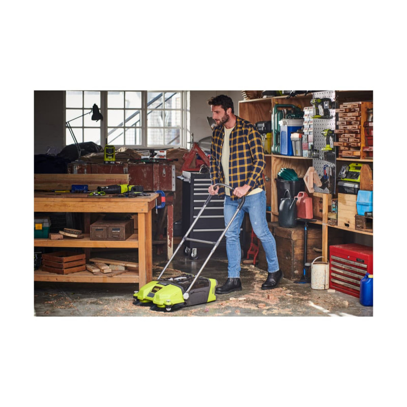 Pack RYOBI Balayeuse motorisée 18V One+ R18SW3-0G - Kit 2 brosses RYOBI pour balayeuse motorisée - RAKDSB02, ce pack comprend une balayeuse motorisée sans fil qui vous permettra de garder votre atelier ou votre garage propre, ainsi que deux brosses.