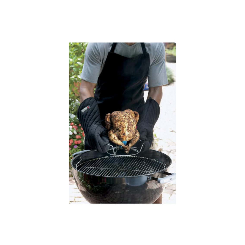 Support de cuisson WEBER - pour poulet, Ce support permet de préparer un poulet à la verticale qui plaira à tous. Il vous suffit de mettre dans l'anneau central une canette de 33 cl de votre bière ou boisson préférée et de positionner le poulet au-dessus.