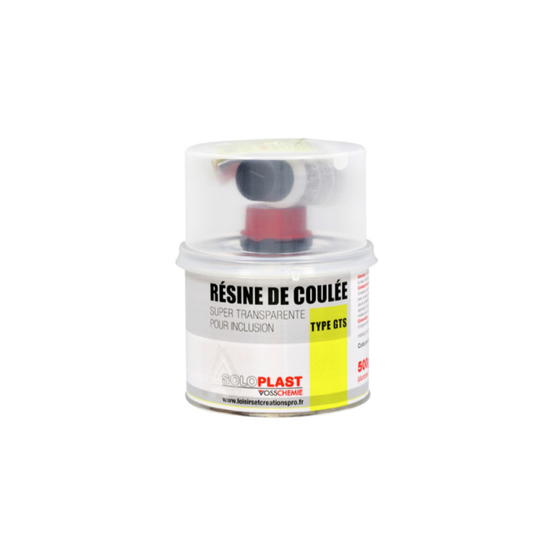 La résine GTS pro Soloplast 500g avec durcisseur est une résine orthophtalique pré-accélérée d'une grande transparence pour la réalisation de pièces en inclusion et l'emploi de stratification.