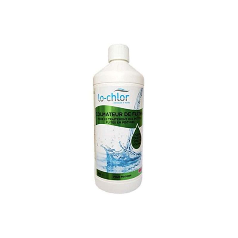 Colmateur de fuites spa et piscine LO-CHLOR - 1L, Lorsqu'il est mélangé à l'eau de la piscine ce liquide permet de colmater partiellement ou en totalité les petites pertes d'eau.