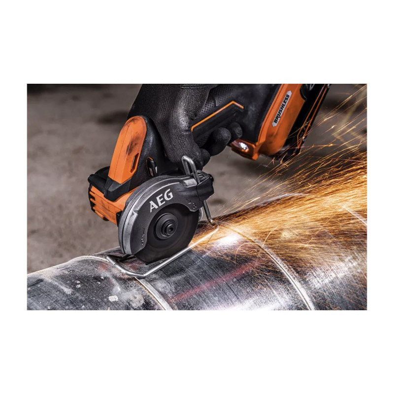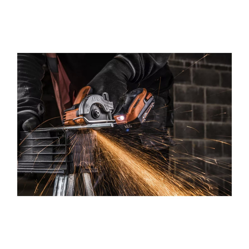 Mini scie multi matériaux AEG 18V - Brushless - Subcompact - Sans batterie ni chargeur - 6 disques - BMMS18SBL-0, mini scie multi matériaux compact idéale pour la découpe de tiges ou barre en acier, inox, métaux non ferreux, découpe du carrelage, céramique, brique, maçonnerie, pierre, découpe de planches PVC, de cloisons sèches, de bois ainsi que des plaques de plâtre.
