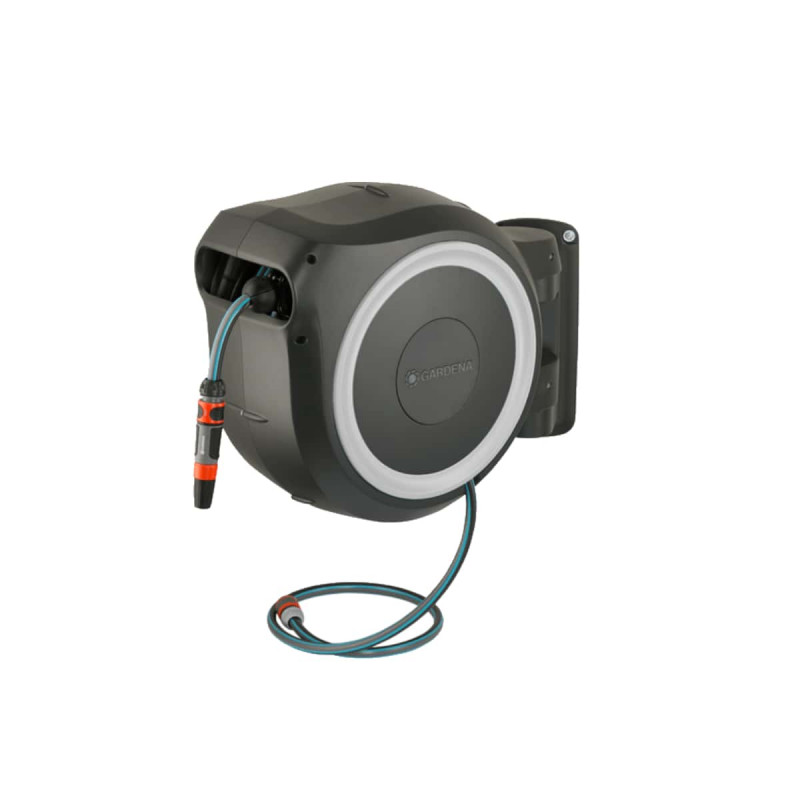 Dévidoir automatique mural idéal pour arroser les grands jardins. C'est une solution d'arrosage et de nettoyage très pratique pour avoir son tuyau d'arrosage toujours prêt à l'emploi et bien rangé.