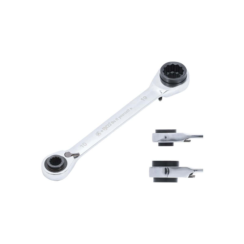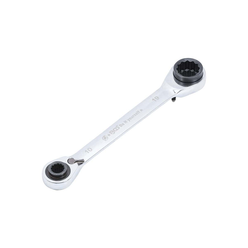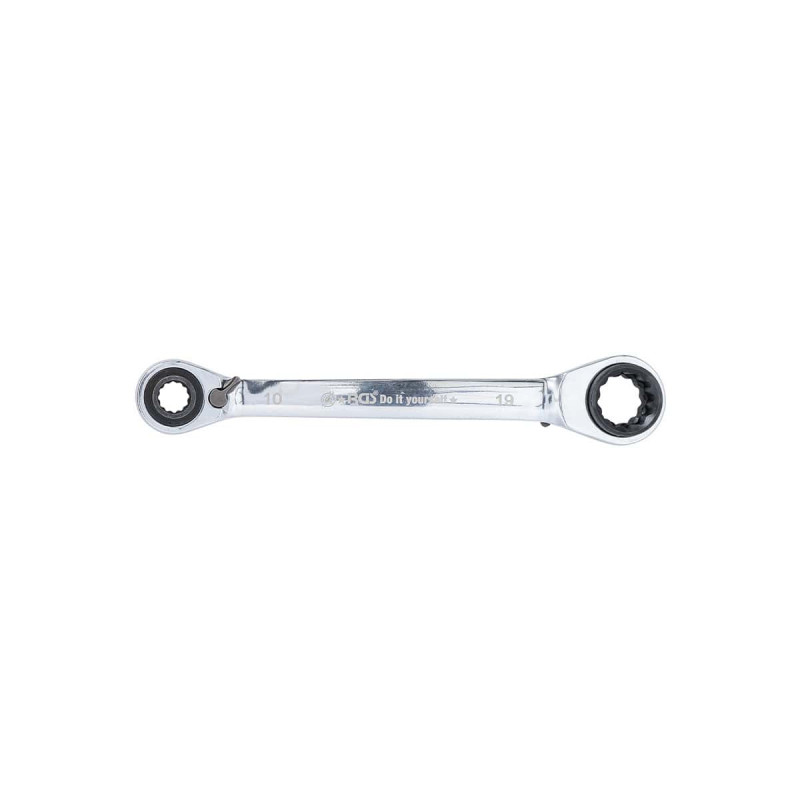 Clé à cliquet 4-en-1 BGS - 30007, cette clé à cliquet est très polyvalente et remplace à elle seule 4 clés, vous faisant gagner de la place dans votre atelier.