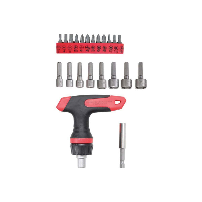 Un jeu d'embouts et douilles poignée en T à cliquet pour embouts réversibles BGS - 22 pcs - 20122