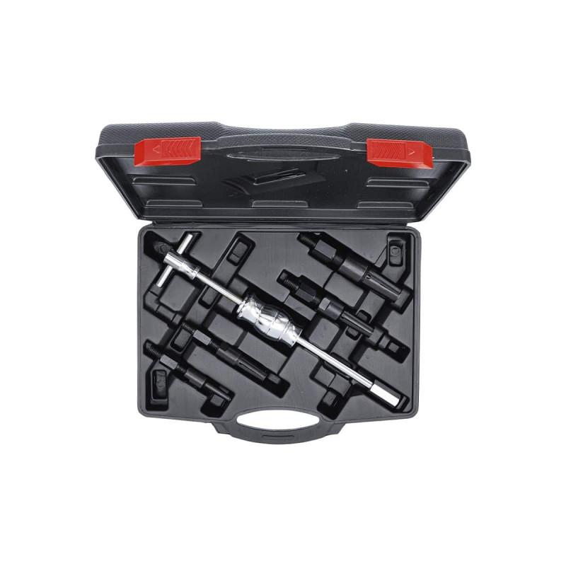 Jeu d'extracteurs de roulements intérieurs avec masse à inertie BGS - 5 pcs - 8598, avec cette mallette regroupant 5 outils, vous pourrez facilement extraire douilles, accouplements, ou encore roulements, très facilement, avec un matériel adapté.
