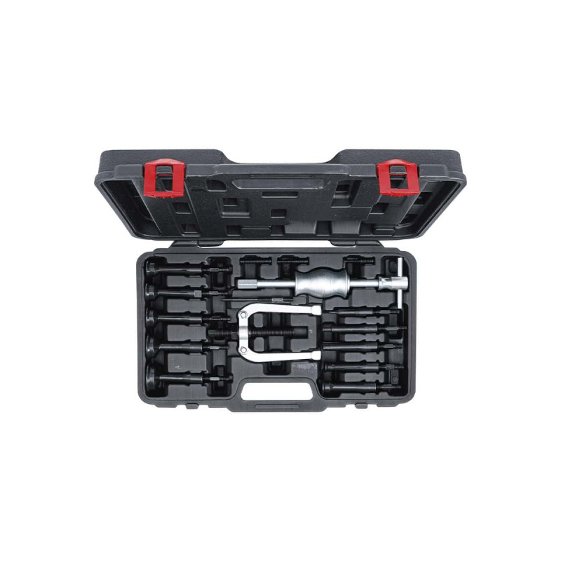 Jeu d'extracteurs de roulements intérieurs BGS - 16 pcs - 7715, pour le démontage de roulements dans un trous borgnes. Mallette comprenant 16 pièces qui vous permettra de travailler avec une plus grande facilité.