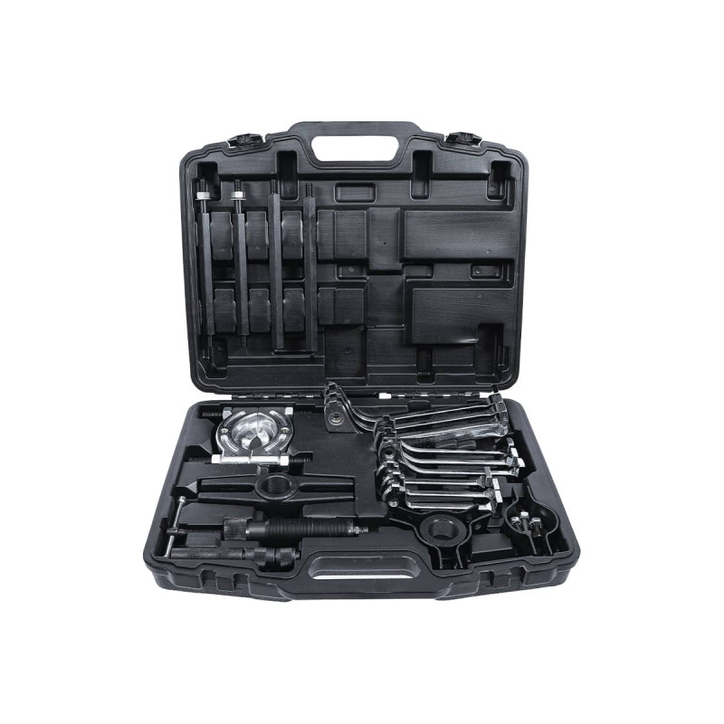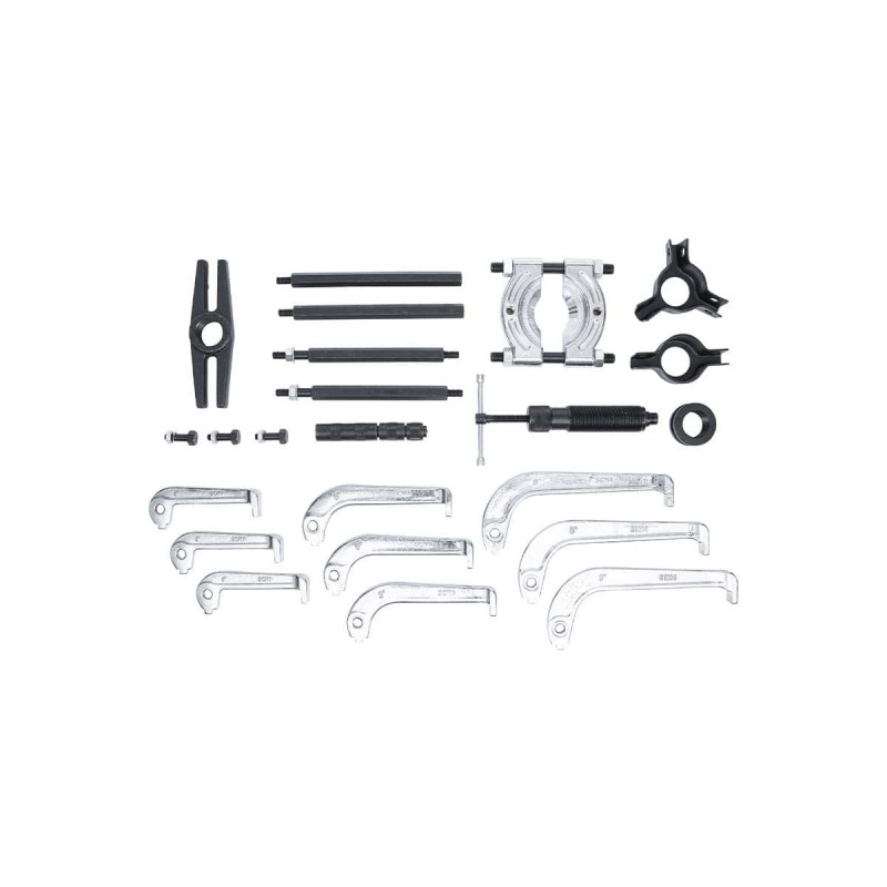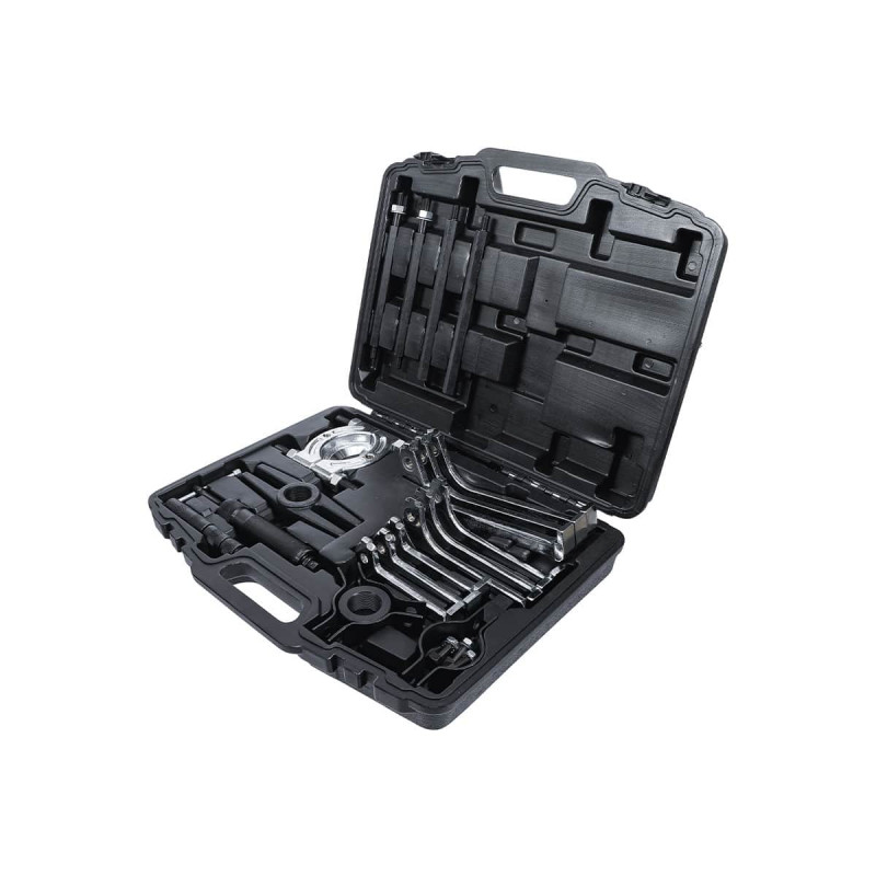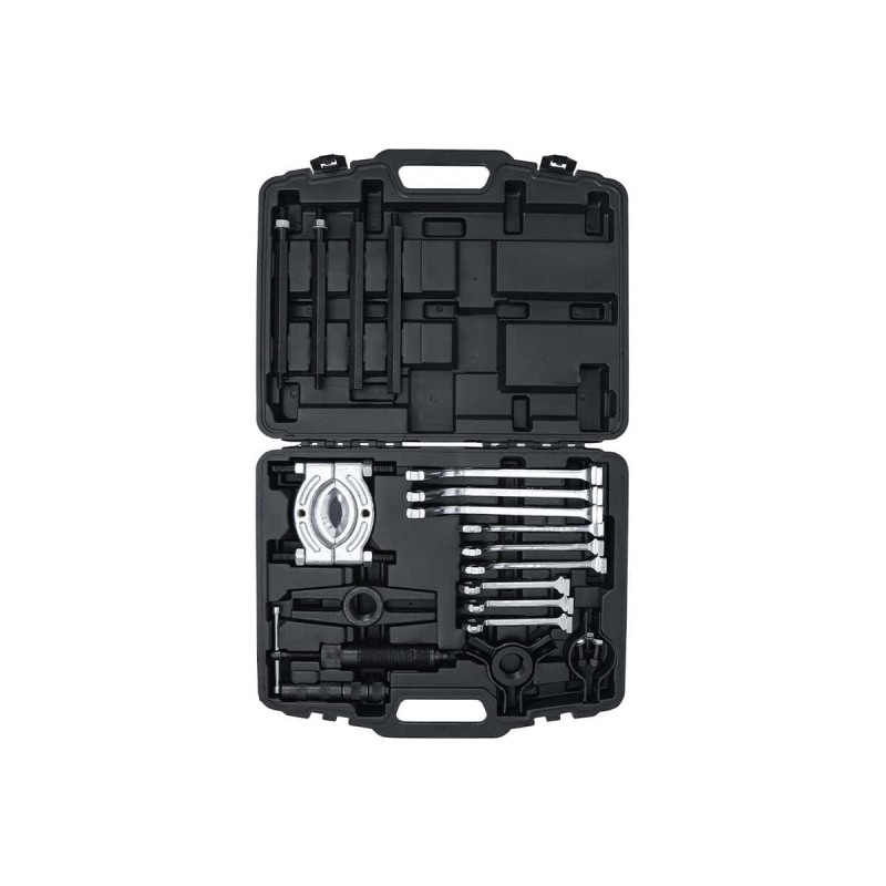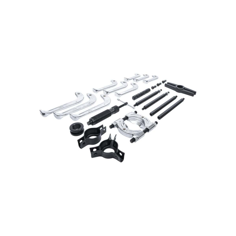 Jeu d'extracteurs hydrauliques BGS - 10 t - 97729, avec ce coffret vous pourrez démonter des pièces mécaniques avec puissance et précision grâce à la tige hydraulique (jusqu'à 10 tonnes), des traverses, des têtes d'extracteurs (2 et 3 bras), 2 rallonges et 2 couteaux de séparation.