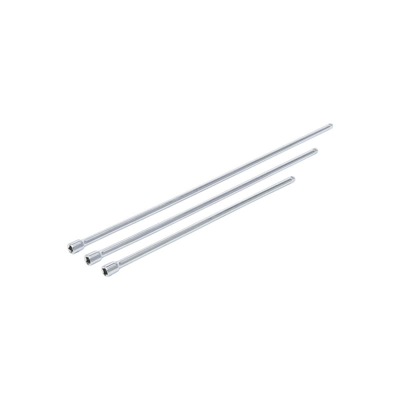 Jeu de rallonges pour clé à cliquet BGS - 6,3 mm - 3 pcs - 92235, pour clé à cliquet manuelle ou pneumatique à empreinte carré quatre pans. Prolongateur pour clé à douille de vissage permettant de rallonger la clé à cliquet. Jeu de 3 rallonges de différentes tailles.
