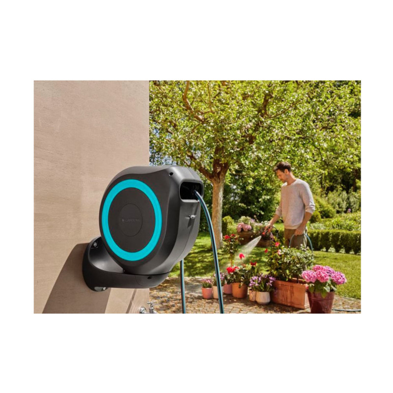 1 x Dévidoir automatique mural GARDENA RollUp M - 20 m - Bleu - 18610-20