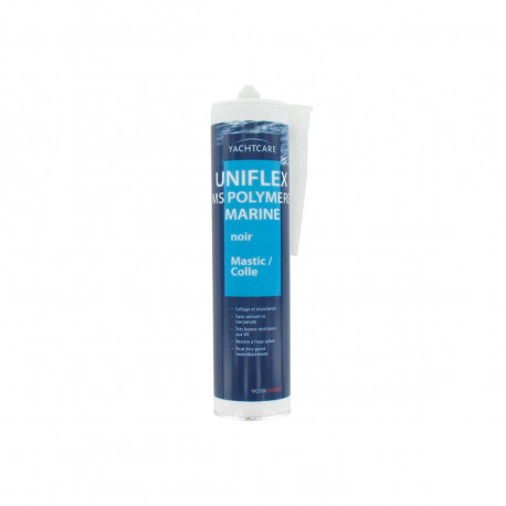 L'uniflex MS marine Yachtcare noir 310ml, est une masse de collage et d'étanchéité polymère mono-composant. La technologie MS polymère offre une bonne résistance aux intempéries, aux contraintes marines ainsi qu'au vieillissement et permet le collage d'un grand nombre de supports (métaux, bois et dérivés, verre et plastiques sauf polyéthylène, polypropylène et PTFE). Les MS polymères peuvent être recouverts directement par une peinture à l'eau ou solvantée.
