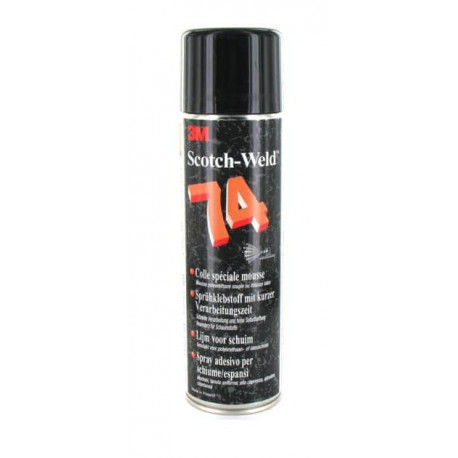La colle pour Mousses 3M Scotch-Weld 74 est une colle en aérosol spécialement formulée pour coller entre eux l'uréthane flexible ou la mousse de latex et la plupart des autres matériaux (bois, métaux, plastiques, etc.). Elle présente l'avantage d'une dispersion en lacet sans brouillard de pulvérisation. La largeur de pulvérisation réglable permet une application précise et (économique) sans surcharge.
