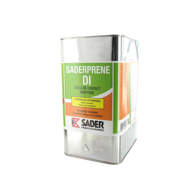 Colle Saderprene DI polyvalente pour le collage de : Caoutchouc, cuir, liège, bois, mousses souples, polyéther et polyuréthanne, feutres entre eux et sur différents supports : bois, métaux, ciment, également pour le collage de semelles ou lisses pour cloisons alvéolaires. S'emploie pour le placage de stratifiés décoratifs sur supports rigides ( agglomérés, bois .... ).Ne convient pas pour le collage de polystyrène expansé ni de PVC plastifié.