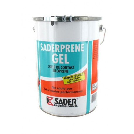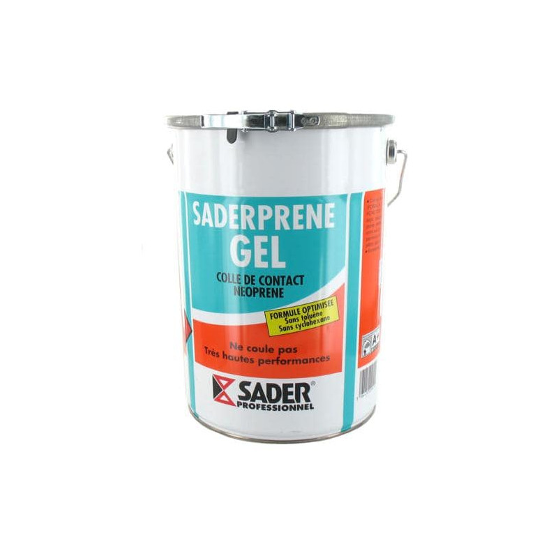 Colle Saderprene Gel tenue de chaleur élevée ne coule pas ,collage de lamifiés, stratifiés, polyester, liège, caoutchouc, métal, papier-plomb, textile, laine de verre, carton, entre eux et sur bois, panneaux, contre-plaqués et de particules, béton, plâtre. Ne convient pas au collage du polystyrène.