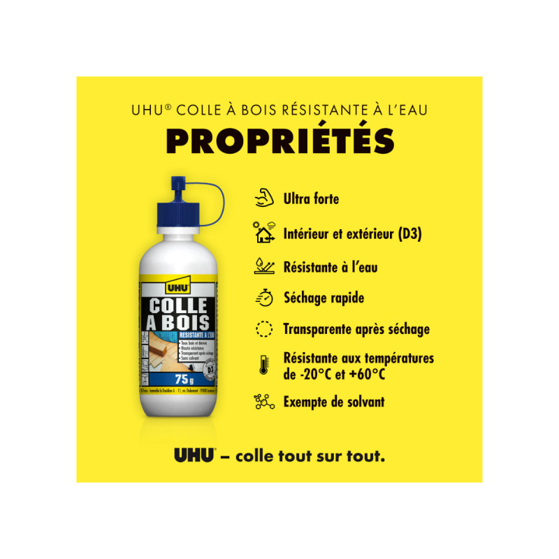 Une colle UHU spéciale bois résistante à l'eau D3 - 75g - 38945