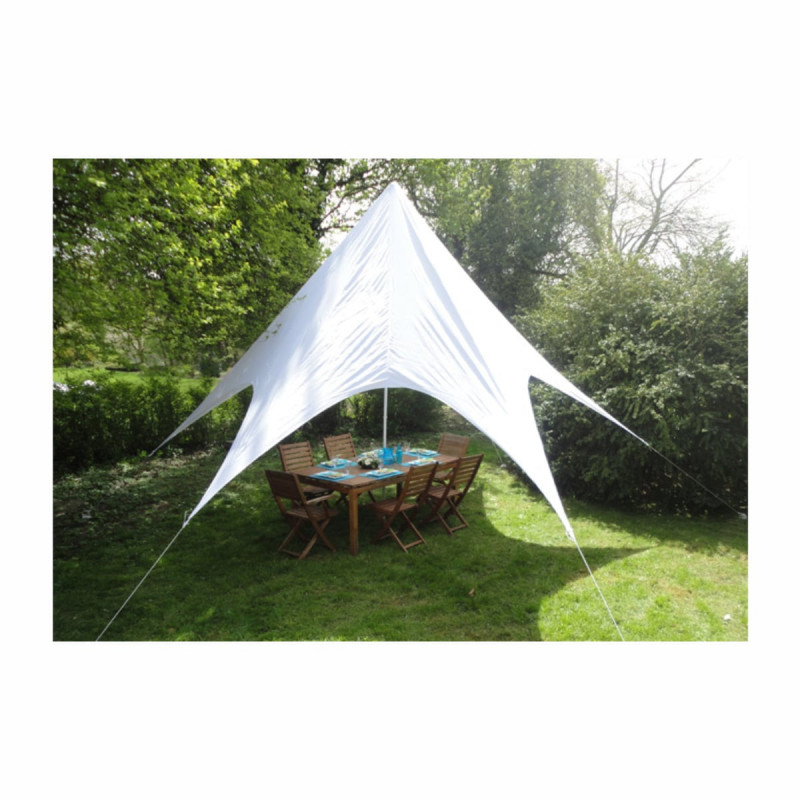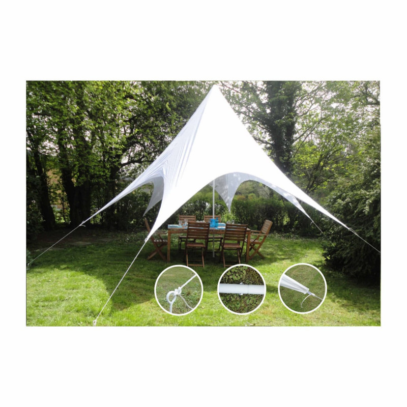 Grâce à cette Toile solaire Tepee, vous pouvez profiter paisiblement dans votre jardin ou terrasse sans vous soucier d'attraper un coup de soleil. Vos repas de famille seront beaucoup plus conviviaux, pour le confort de chacun ! De plus, cette toile pyramide tipi apporte une décoration supplémentaire originale à votre espace extérieur. Sa mise en place est facile à l’aide de cordes et piquets, et vous évite d'avoir à installer un parasol de pied. Un autre de ses grands atouts de cette toile au diamètre de 3,5m est également le fait qu’elle soit imperméable : pas de tâches, cette toile anti-humidité est résistante aux salissures et au mauvais temps. Livré avec un sac de transport. Profitez d'un espace ombragé en toute convivialité !
