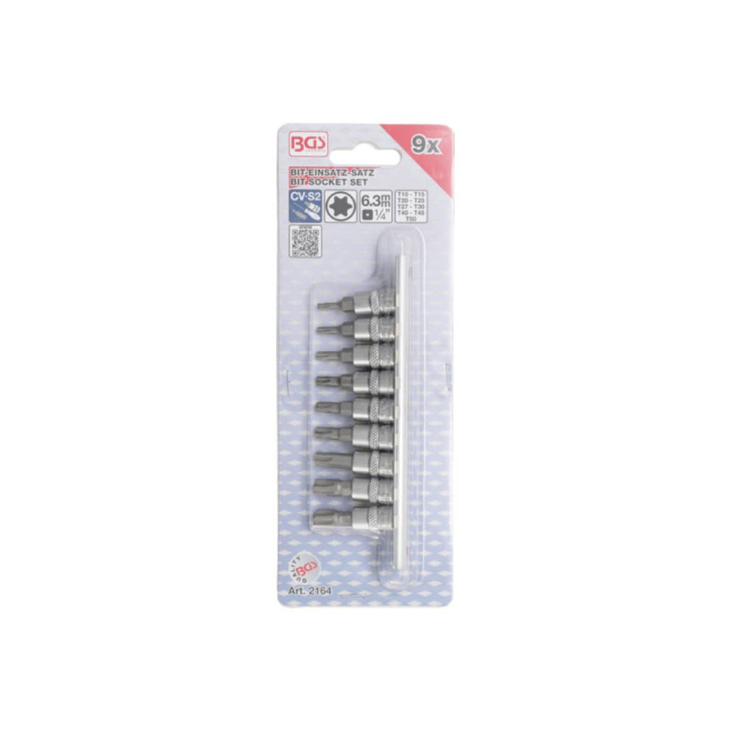 Un Jeu de douilles à embouts BGS TECHNIC pour Torx Plus - 6,3mm (1/4") - Profil T T10/T50 - 9 pcs - 2164