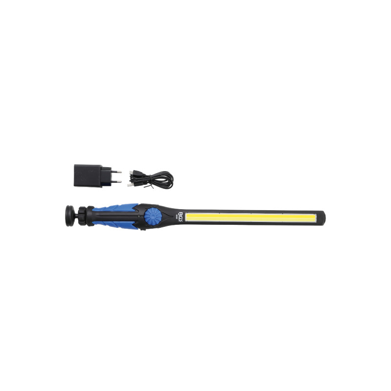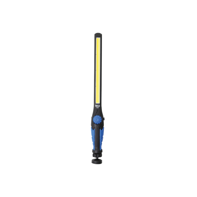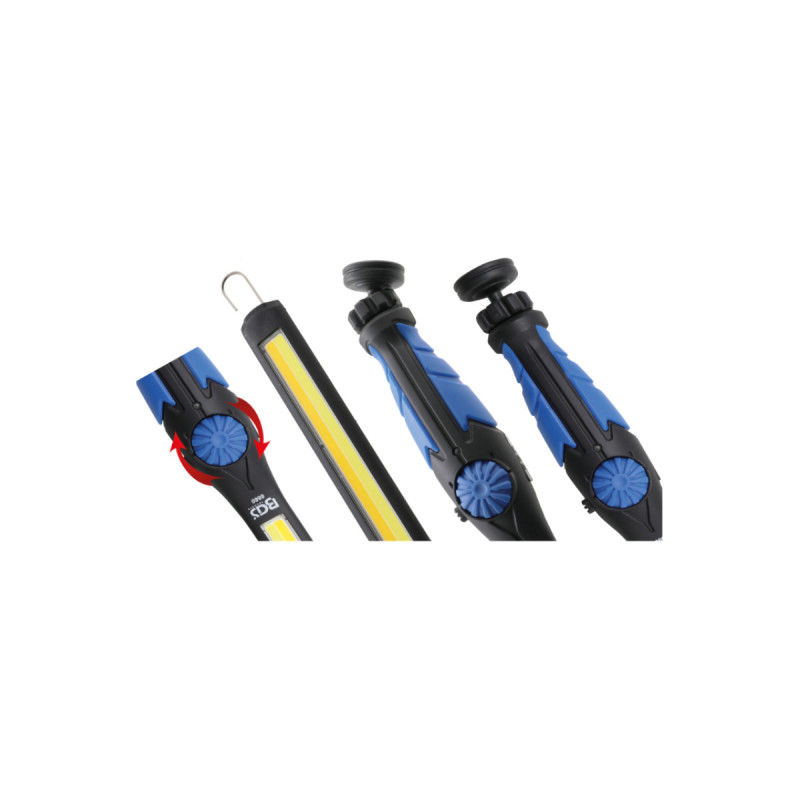 Une Lampe de travail BGS - COB-LED - 6660, idéale pour la détection de bosses, pratique et adapté aux espaces étroits. Garantie un confort d'utilisation, lumière commutable en 3 étapes du blanc au jaune et une combinaison de blanc et de jaune
