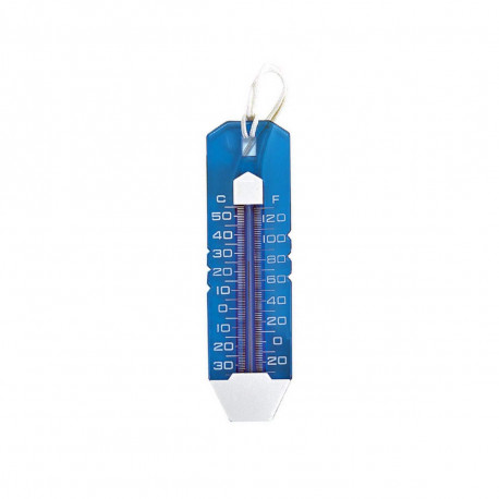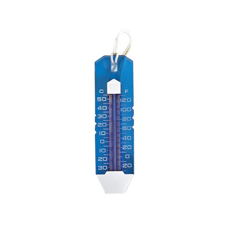 Ce thermomètre translucide MAREVA vous indiquera avec précision et fiabilité la température de votre piscine, et ce jusqu'à 50 degrés C°. Ce thermomètre de 25cm présente l'avantage d'afficher les 2 systèmes de mesure Celsius et Fahrenheit afin de convenir à chacun. Sa matière translucide et sa couleur bleue assureront qu'il se fonde naturellement dans votre eau de piscine, tout en étant reconnaissable avec sa petite cordelette d'attrape blanche.