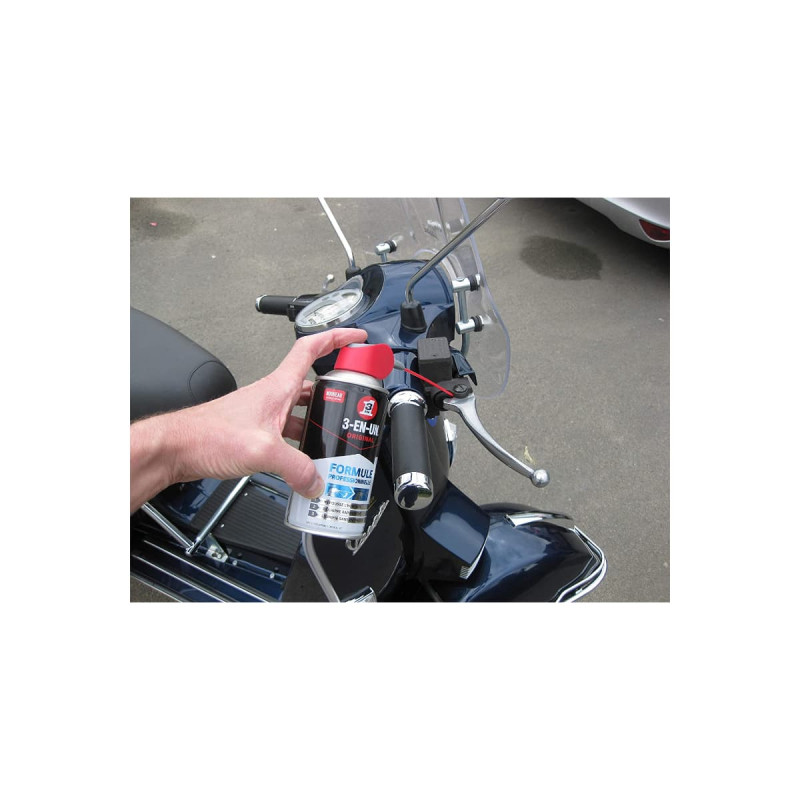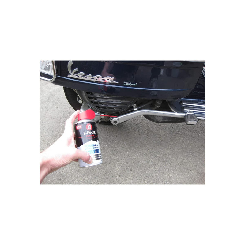 Le double spray de cette formule professionnelle 3-EN-1 permet d’appliquer l’huile tous usages de manière diffuse ou précise en un simple geste: il vous suffit de relever le tube prolongateur ou le laisser tel quel. Formulée sans silicone, elle offre une protection contre la rouille et la corrosion et permet de libérer les pièces bloquées grâce à son action lubrifiante.