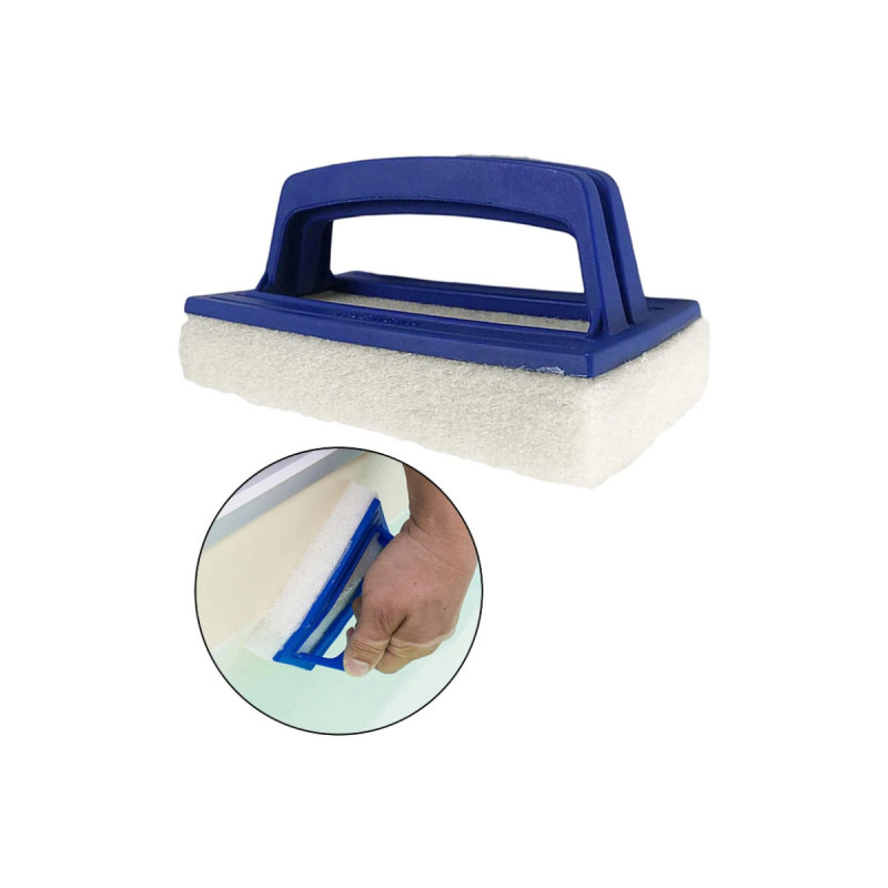Cette brosse éponge MAREVA est l'équipement idéal pour nettoyer sa ligne d'eau. Vous venez de remarquer la présence d'une ligne continue de couleur blanche ou jaunâtre sur les parois de votre piscine ? Il s’agit de la ligne d'eau de votre piscine qui est encrassée : un nettoyage s’impose. Cette brosse manuelle est idéale pour nettoyer cette zone très sensible qui a tendance à se salir rapidement du fait du calcaire ou des conditions météo. Cette brosse peut s'utiliser sans produit additionnel, il suffit de la mouiller et de frotter sans forcer pour nettoyer la ligne d'eau. Elle viendra ôter les saletés et décrasser, tout en ne rayant pas votre liner. Cette brosse à la prise en main agréable est idéale pour un entretien régulier, ce qui est indispensable afin d’éviter que votre revêtement ne se colore définitivement. Si les saletés sont particulièrement tenaces ou si vous désirez gagner en temps, vous pouvez opter pour un de nos nettoyants de ligne d’eau et opter pour notre pack nettoyant + brosse.