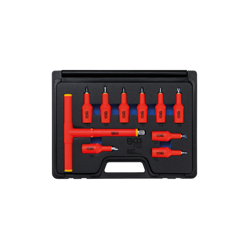 Un Jeu de douilles VDE BGS TECHNIC - empreinte carré 12,5mm - profil T ( pour Torx) T20-T55 - 10 pcs - 7131