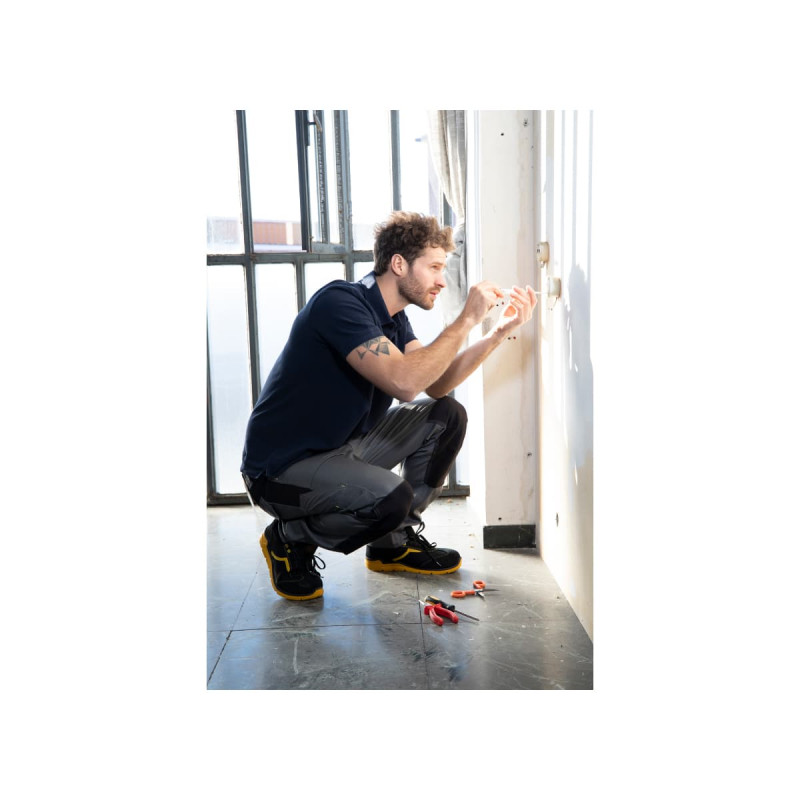 Le pantalon de travail normé gris multi-poches pour homme de RICA LEWIS, conviendra aussi bien aux amateurs du bricolage qu'aux professionnels. En effet, ces derniers pourront l'utiliser puisque ce pantalon est conforme à la norme européenne CE EN:13402-3:2017. La présence des inserts extensibles sur les cotés, les genoux et aussi sur la fourche arrière vous permettront de vous mouvoir librement et de manière confortable dans cette pièce forte. En outre, un tissu spéciale a été utilisé sur ce pantalon pour permettre à son porteur de respirer, mais surtout d'être au frais et au sec. Le maintien de votre futur pantalon sera assuré par sa double ceinture élastique antidérapant intégrée. De plus, vous pourrez ranger différents objets tels que le téléphone ou des outils dans les nombreuses poches (avec soufflet ou latérales fermées) que possèdent ce vêtement. Enfin, pour éviter les potentiels déchirures, RICA LEWIS a cousu en triples aiguilles pour garantir une solidité optimale des coutures de sécurité.