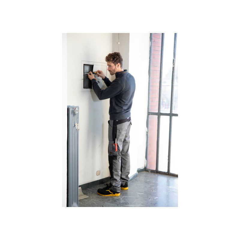 Le pantalon de travail normé gris multi-poches pour homme de RICA LEWIS, conviendra aussi bien aux amateurs du bricolage qu'aux professionnels. En effet, ces derniers pourront l'utiliser puisque ce pantalon est conforme à la norme européenne CE EN:13402-3:2017. La présence des inserts extensibles sur les cotés, des genoux renforcés et aussi sur la fourche arrière vous permettront de vous mouvoir librement et de manière confortable dans cette pièce forte. En outre, un tissu spéciale a été utilisé sur ce pantalon pour permettre à son porteur de respirer, mais surtout d'être au frais et au sec. Le maintien de votre futur pantalon sera assuré par sa double ceinture élastique antidérapant intégrée. De plus, vous pourrez ranger différents objets tels que le téléphone ou des outils dans les nombreuses poches (avec soufflet ou latérales fermées) que possèdent ce vêtement. Enfin, pour éviter les potentiels déchirures, RICA LEWIS a cousu en triples aiguilles pour garantir une solidité optimale des coutures de sécurité.