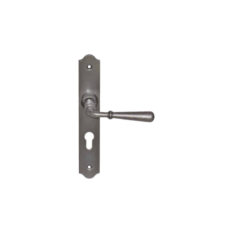 Une Poignée de porte sur plaque à clé classique modèle Beynac - Fer patiné