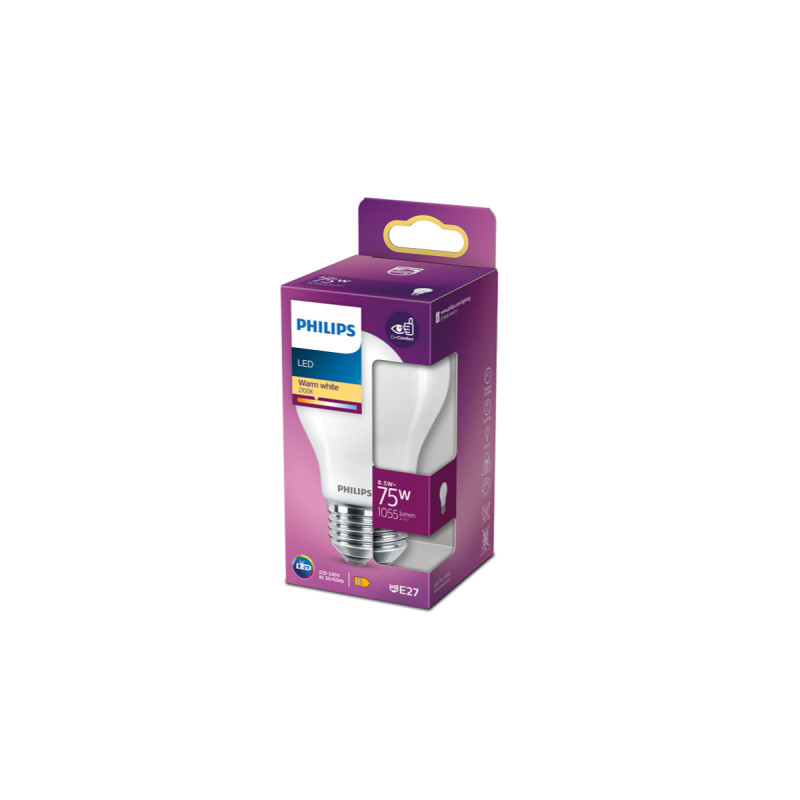 Une ampoule LED standard PHILIPS - EyeComfort - 8,5W - 1055 lumens - 2700K - E27 - 93000