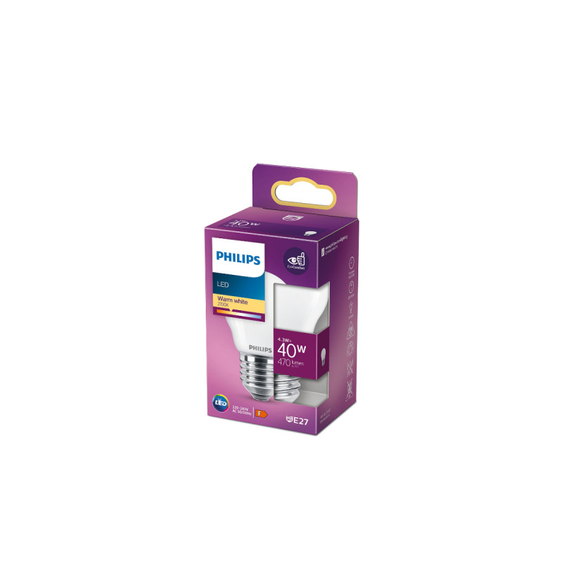Une ampoule LED sphérique PHILIPS - EyeComfort - 4,3W - 470 lumens - 2700K - E27 - 93013