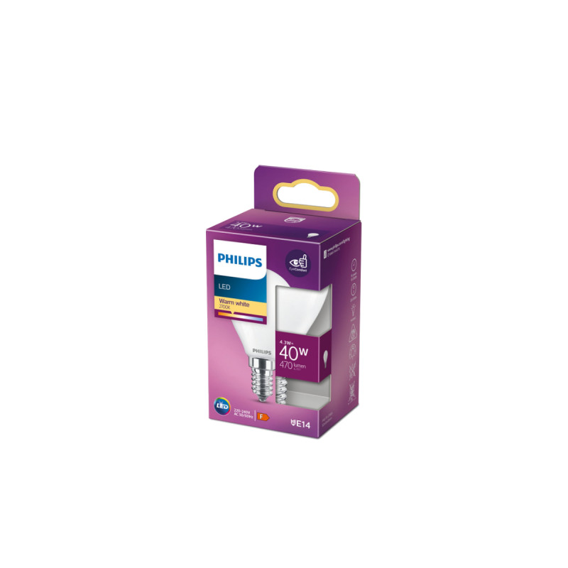 Une ampoule LED sphéroïdale PHILIPS - EyeComfort - 4,3W - 470 lumens - 2700K - E14 - 93012