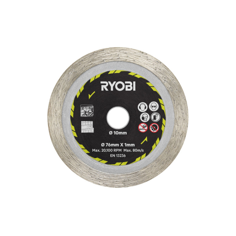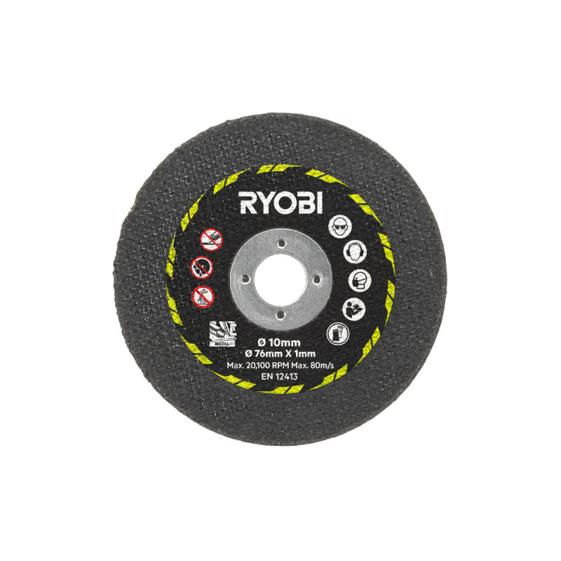 Ce kit 3 disques pour meuleuse RYOBI - 76 mm - RAKCOT03 est parfaitement compatible avec la meuleuse d'angle ONE+ RCT18C-0. Un disque pour effectuer des découpes dans le métal, un autre pour le carrelage et le fibre-ciment, puis un troisième pour le placoplâtre et le plastique.