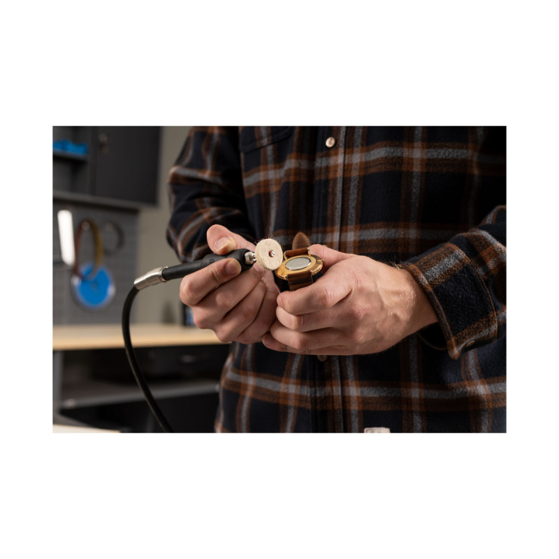 Des envies de bricolage ? Le touret à meuler et à polir avec son flexible de 120 W est fait pour vous. Polyvalent, grâce à lui, vous pourrez aussi bien meuler, qu'affûter et polir vos outils. Doté de 4 patins qui permettent d'amortir les vibrations et stabiliser l'appareil pour un meilleur confort d'utilisation. Vous pourrez régler facilement la vitesse de l'appareil en continu de 0 à 11000 min⁻¹ pour qu'il s'adapte ainsi à vos besoins. De plus, pour des travaux de précision, l'appareil dispose d'un flexible d'un mètre de long. Enfin, pour protéger son utilisateur de potentielles étincelles, le touret possède un grand pare-étincelles réglable.