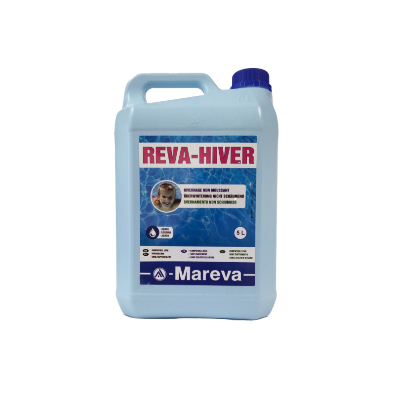 Ce produit d'hivernage MAREVA Reva hiver multi-actions - 5 L - 150015U, est multifonctions : anti algues concentré hyperactif, anti-calcaire et anti-bactérie. Compatible avec tous les traitements, il est garanti sans sulfate de cuivre. Ce produit est à utiliser pendant l'hiver, quand la température de l'eau de la piscine est inférieure à 16°C ; au printemps, vous pourrez alors reprendre le traitement d’entretien régulier. De quoi la retrouver limpide aux beaux jours !