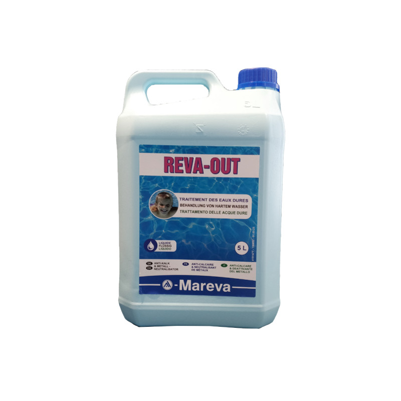 Anti calcaire Reva-out MAREVA - 5 L - 150052U, particulièrement recommandé avec les produits de la méthode REVACIL+, il est inhibiteur et complexant des ions métalliques, du calcium et du magnésium. Il évite les dépôts de calcaires en eau dure (> 25° F) et chauffée.
