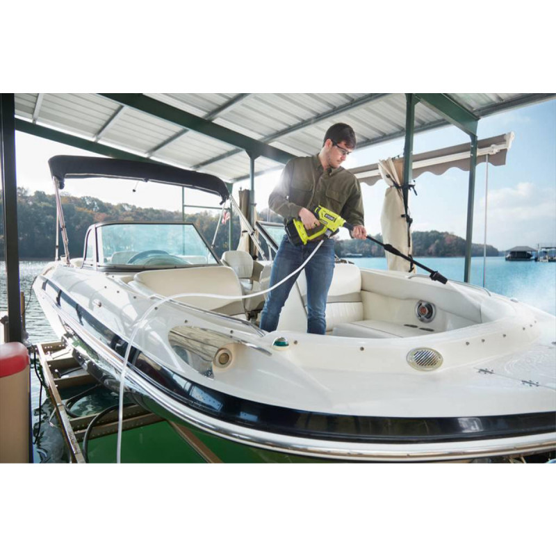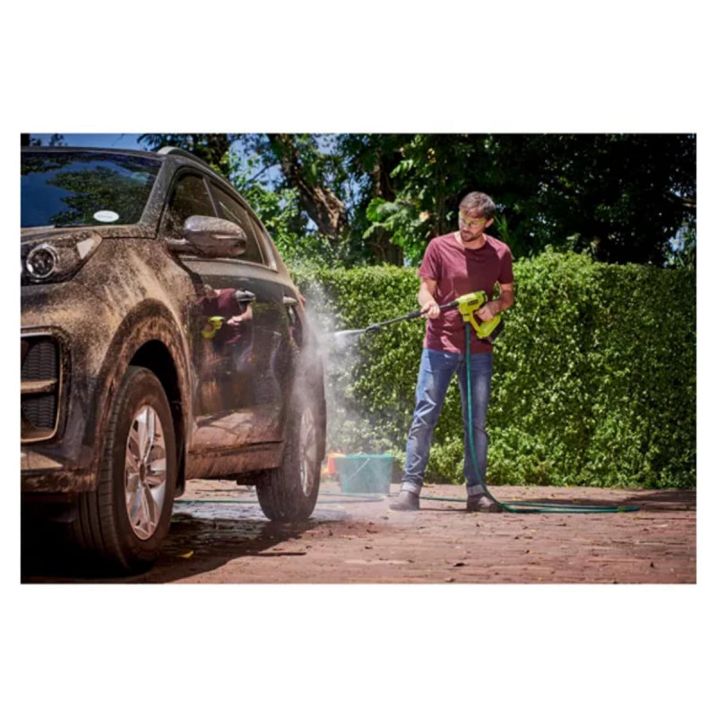 Le pistolet à pression RYOBI 18V One+ - Sans batterie ni chargeur RY18PW22A-0 est idéal pour nettoyer les surfaces simplement et rapidement et efficacement. Les différents accessoires compatibles avec l'appareil sont rapide et simple à connecter. Sa buse 3-en-1 (jet crayon, jet 15°, jet rinçage) permet changement facile et rapide d’un jet à l’autre. Jusqu'à 4 fois plus de puissance qu’un tuyau d’arrosage classique. Son design compact et léger permet un transport facile. La poche à eau de 20 L RAC717 incluse permet une utilisation entièrement nomade de l'appareil sans vous soucier d'être à proximité d'une arrivée d'eau.
