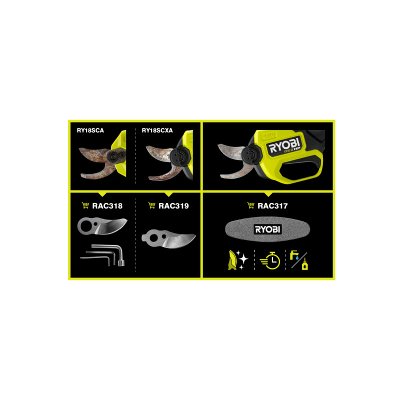 La pierre d’affûtage pour sécateurs sur batterie RYOBI - carbure silicium - grain 320 - RAC317 est compatible avec les sécateurs RY18SCA-0, RY18SCXA-0 et RY18SCXA-115. Cette pierre est idéale pour les lames chromées de haute qualité de ces appareils et leur garantie une nouvelle vie. Comme neuves, vos lames réaliseront des coupes encore plus nettes et précises.